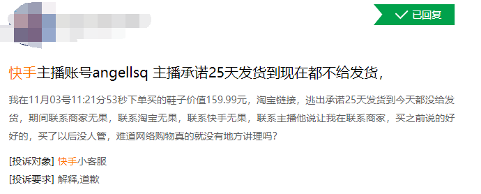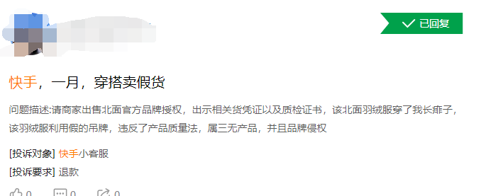 直播带货给快手带来有限收入,却带来无限的麻烦。某投诉平台显示,快手投诉量高达1.68万条,而用户量级比快手高的抖音仅1.14万条。用户投诉涉及各个方面,各个环节,出现最多的字眼是“假货”,可以看出快手电商几乎“沦陷”。