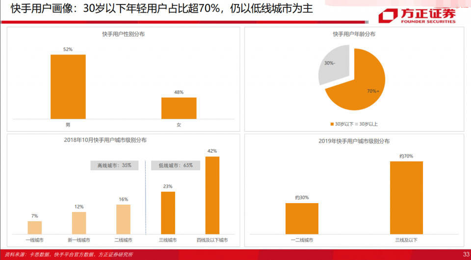 我们曾在《市值观察丨快手巨亏背后,“老铁经济”暗藏隐患》中提到,快手用户主要集中在三线城市和四线城市,年龄分布在30岁以下,消费能力相对有限,所以以打折促销为主要销售逻辑的直播带货存在一定“杀伤力”。