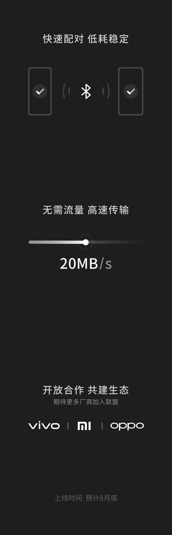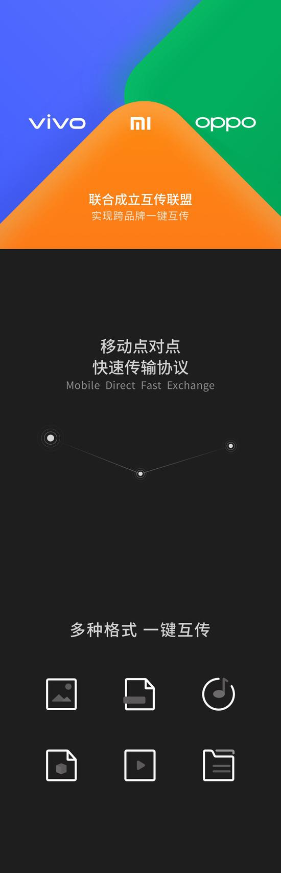 科创 小米、OPPO、vivo三强结盟:实现跨品牌一键互传 2019-08-19 12:03:56 分享 新浪科技讯 8月19日上午消息,小米、OPPO、vivo宣布联合成立互传联盟,旨在实现跨品牌一键互传,提升文件传输体验。据官方介绍,打通后的互传功能操作快、传输快、功耗低,无需流量和第三方应用,跨品牌文件传输和数据迁移“一触即达”,近期开启公测。