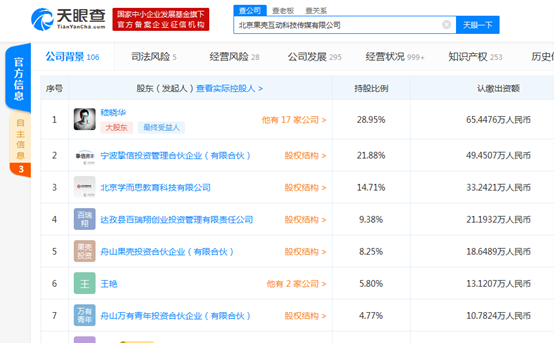 炣燃科技8月20日讯 2019年8月19日,有媒体报道称百度入股果壳网,持股比例为9.38%,据天眼查相关数据显示,其交易金额为21.1932万。