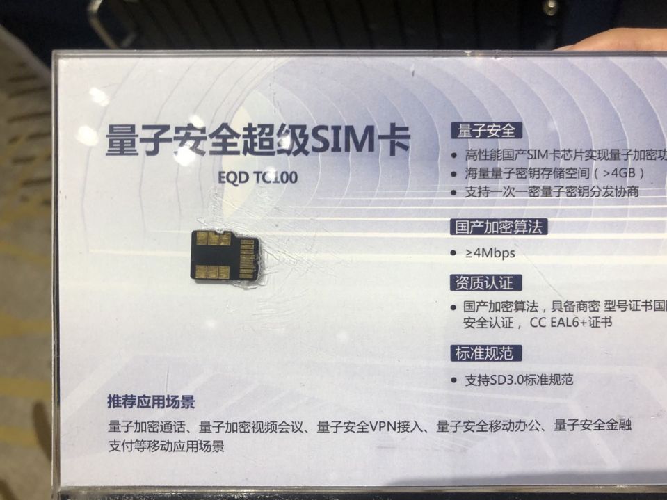 量子安全通话SIM卡 本文图片均来自澎湃新闻记者 虞涵棋 图