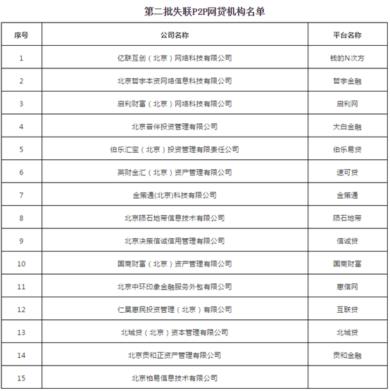 炣燃科技8月20日讯 昨日,北京市朝阳区互联网金融协会发布了《关于朝阳区内第二批失联P2P网贷机构的提示》,共计15家失联的P2P企业名单被曝光。