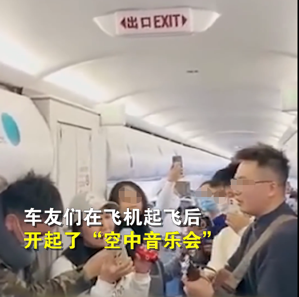 爆料视频显示,飞机起飞后,车友们未戴口罩在机舱内唱歌、弹吉他,开起了“空中音乐会”。11日,中国国际航空公司工作人员表示,这样的行为肯定是不允许的,目前已就该事件上报公司核实。