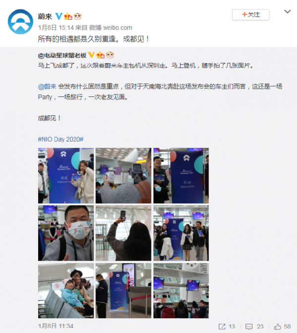 值得注意的是,蔚来官方微博曾转发了蔚来车主包机的相关微博。