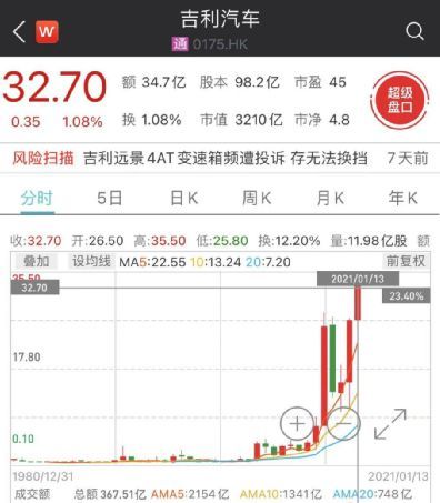 吉利汽车港股涨1.08%,报收32.7港元/股。开年来8个交易日,在接连利好消息的刺激下,吉利汽车股价累计涨幅已达23%,市值超3200亿港元。去年股价累计涨幅达77%。