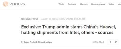 (路透社:特朗普政府猛烈打击华为,要求英特尔等公司停止对其供货)