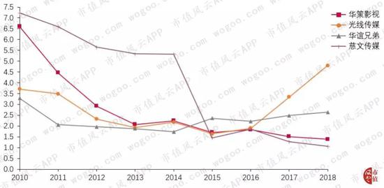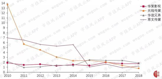近年来,公司应收账款不断增加,2018年达到42.48亿元,2010年至2018年间,公司的应收账款周转率整体呈现下降趋势,显著低于光线传媒和华谊兄弟,略高于慈文传媒。