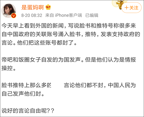 同天,脸书也删除了7个粉丝专页、3个社团和5个个人帐号,给出的理由与推特基本一致。