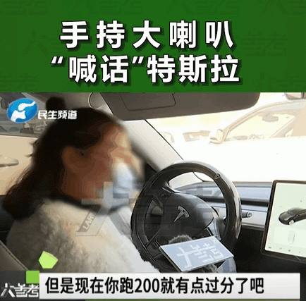 女车主性格也是相当直爽,看在眼里急在心里,直言,你为什么不敢正面回应呢?你这样就是在砸特斯拉的牌子。同时,说话之间,女车主又把大喇叭打开,坐在特斯拉售后桌子上,放起了外音,“官方续航标注468km,实际只能跑200多公里,消费者购车时切勿上当”。响亮的维权宣言,在特斯拉“高大上”的交付中心大厅久久回响。