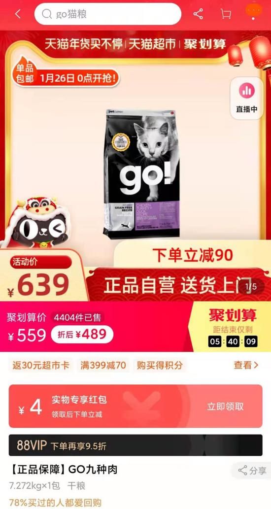 截止发稿前,天猫超市GO!猫粮仍正常销售。
