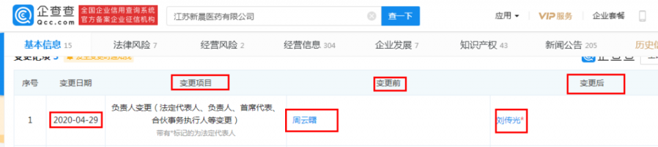 上述企查查结果还显示,这家已注销的公司,在2020年4月29日还做了一次变更。变更内容由法定代表人周云曙变更为刘传光。