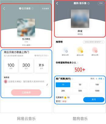 无独有偶,此类的“模仿”不止一次。网易云音乐指出,2020年4月份的7.1.10版本上线“云贝推歌”功能:粉丝可以用“云贝”为喜爱的音乐进行推广和支持。三个月后酷狗音乐上线了“音乐推”功能(5部分内容与“云贝推歌”功能相似)。