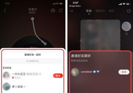 一周前,我们可喜地发现,酷狗上线“跟听”功能,对网易云音乐“一起听”的模仿到了像素级的地步,具体如下: