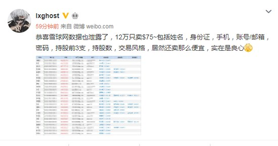 今日早间,网传称雪球网数据泄露,涉及12万人的数据只卖75美元,包含姓名,身份证,手机,账号/邮箱,密码,持股前3支,持股数,交易风格。