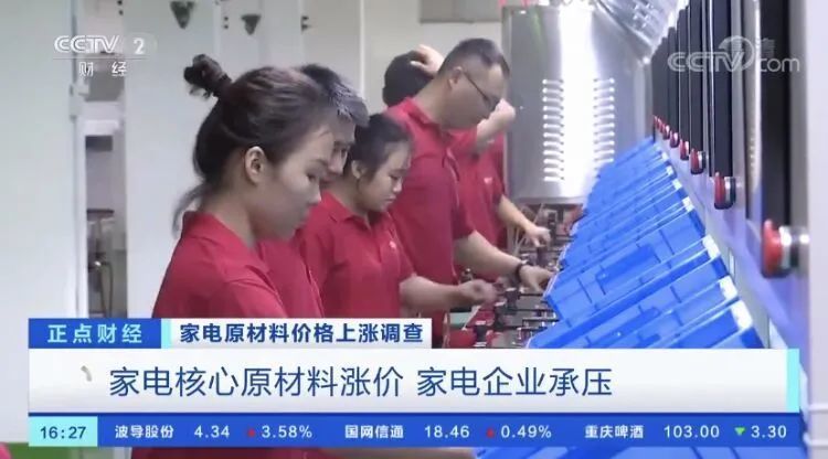 对家电制造业来说,原材料成本占比可达七成以上。家电行业对铜、铝、钢材、塑料等大宗原材料需求量大,如果原材料价格上涨,家电企业不得不面临着成本压力,终端产品的涨价也在情理之中。