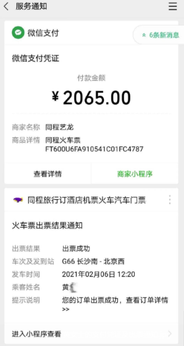 出于“想省事”和“多花一点钱能享受到更优质服务”的心理,黄女士共花费2065元,通过“免核验通道”购买了一张从长沙南站至北京西站的商务座高铁票,随后平台显示“出票成功”,订单详情中也显示了座位号。