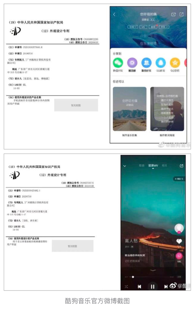 1.酷狗音乐所放出的专利与其现在的产品功能形态、界面设计和交互形式,驴唇不对马嘴。