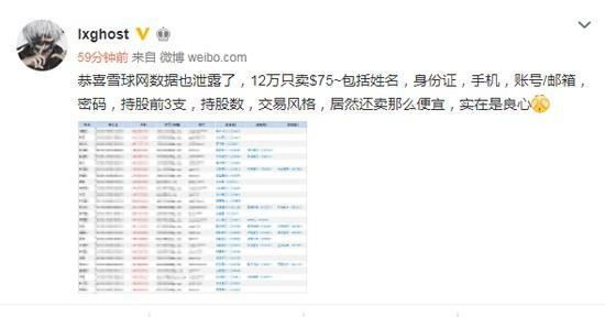 今日早些时候,网上流传称雪球网数据泄露,涉及12万人的数据只卖75美元,包含姓名,身份证,手机,账号/邮箱,密码,持股前3支,持股数,交易风格。彼时,雪球回应称,不会以任何方式将个人信息泄露给第三方,对此问题已进行核实。