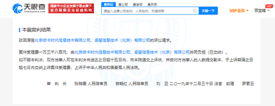 本案裁判结果为:驳回原告北京微卡时代信息技术有限公司、卓望信息技术(北京)有限公司的诉讼请求等。