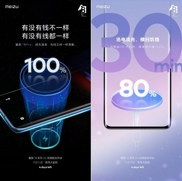 值得一提的是,魅族官方今早还公布了魅族18系列的充电规格,其相比前代产品有所升级,其中魅族18标准版将配备4000mAh电池、支持36W快充。