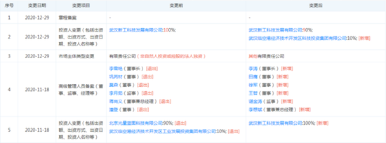 同年11月,武汉弘芯高层大换血、股权变更。据企查查显示,原有持股90%的北京光量蓝图科技有限公司以及持股10%的武汉临空港经济技术开发区工业发展投资集团有限公司双双退出。