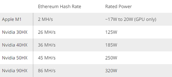 按照顾大神的实验,M1 MBA挖矿效率很一般,只有2MH/s,功耗大约17~20瓦。比起NVIDIA的CMP专用矿芯,那完全不在一个量级,只适合新手尝鲜,日收益0.14美元左右,也就是不到1块钱人民币。