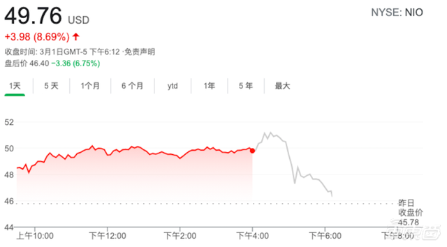 蔚来2020年财报发布后,盘后股价一度下跌至每股46.4美元(约合230元人民币),相比于收盘价跌幅超过6%。