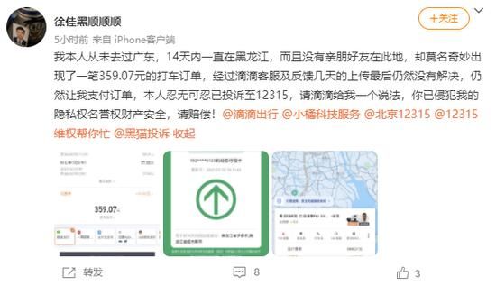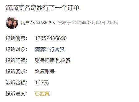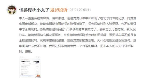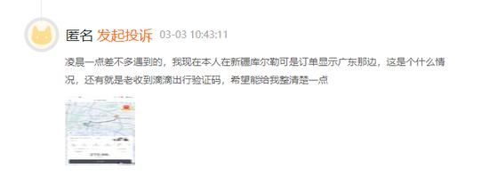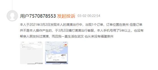 3月3日,新浪财经在黑猫投诉平台发现,近期出现多则关于滴滴异地订单的投诉,多名用户表示,自己的滴滴账户无故出现了异地订单。