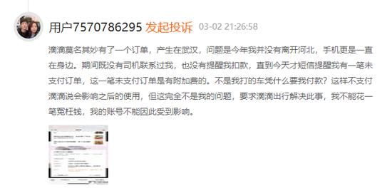 同样,一名南京用户也表示,3月1日自己使用滴滴时突然多出一笔位于广西的未付款订单,时间是2月26日,跟滴滴客服沟通后,客服表示:这个订单只能游用户自己进行支付掉,不然会影响后期使用。