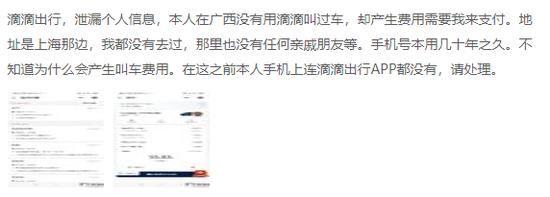 据一名来自广西的用户介绍,自己人在广西,没有用滴滴叫过车,却产生了多笔滴滴订单,并且费用需要自己支付,而订单的地址位于上海,他说:“我都没有去过,那里也没有任何亲戚朋友等。手机号本用几十年之久。不知道为什么会产生叫车费用。在这之前本人手机上连滴滴出行APP都没有。”