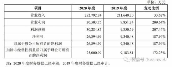 极米科技2020年营收为28.28亿元,较上年同期的21.16亿元增长33.62%;净利润为2.69亿元,较上年同期的9340万元增长187.94%。
