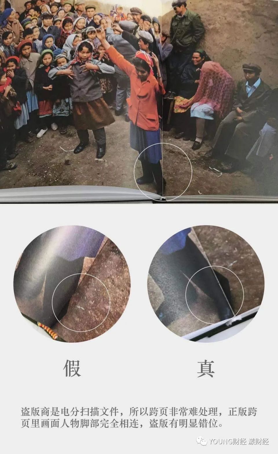 其中第一类和第二类,非常容易分辨,它们的印刷和制作质量极其粗糙,内文用纸是低廉的纸张,颜色是青蓝色或暗黄色,手感粗糙,内文字迹模糊,使用放大镜检查后可看到字锯齿毛边、点状马赛克,图片撞网现象,细节丢失,颜色深重无层次,使用放大镜检视可见马赛克;封面更为粗劣,重影、偏色,甚至字迹是印歪的、被裁切掉的,多数覆有一层薄膜,手摸上去会发出涩涩的令人难受的质感,类似于粉笔划过玻璃板那种。