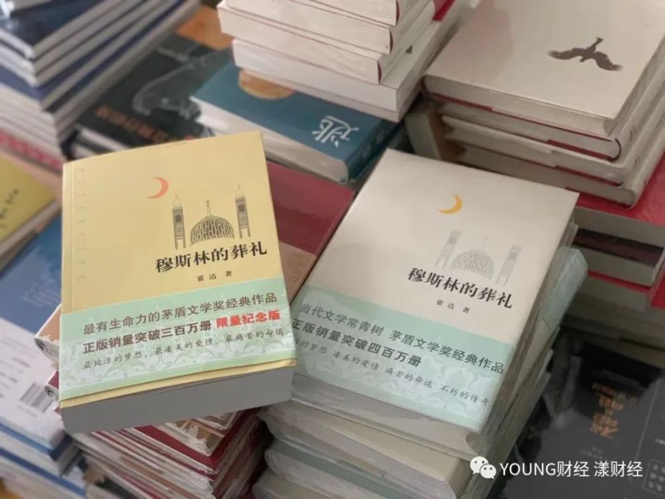 北京十月文艺出版社的书车上刚好有一本正版《穆斯林葬礼》,左为盗版书(购自拼多多“瀚海图书店”)