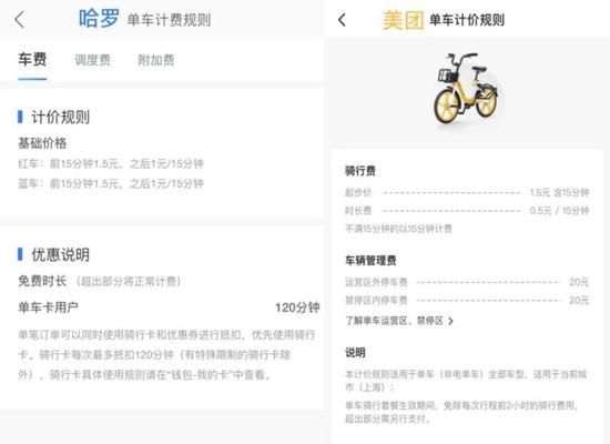 在支付宝上购买哈啰单车连续包月卡的价格为15元,同为连续包月卡,哈啰单车App的专享价为12元;30天月卡,支付宝小程序的价格为16.9元,哈啰单车App的价格为15.5元。