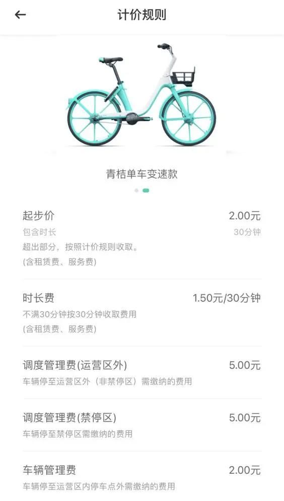 共享单车涨价了?《IT时报》记者发现,与此前1.5元/半小时的价格相比,青桔的价格不变,青桔经典款1.5元/半小时,变速款2元/半小时,之后按1.5元/半小时计算。