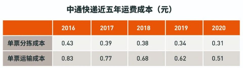 据年报数据显示,由于自驾车辆的使用、过路费降低、柴油价格下降等原因,每件包裹的线路运输成本下降17.0%,至人民币0.51元;由于自动化设备利用率提高,以及规模经济改善,分拣中心每包成本下降9.4%,至人民币0.31元。