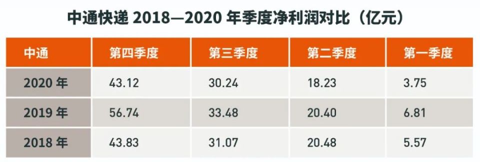 而2020年的财报数据则显示,中通快递的净利润(归属于上市公司股东的净利润)为43.12亿元,较上一年下降 23.7%;顺丰的2020年净利润为73.26亿元,较上一年上涨了26.39%。
