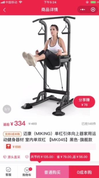是的,这个平台唯一的要求,就是你在它的商城买一件东西时,先要支付给平台差不多100倍的订金,然后平台在一定时间将钱全部退还给你。比如说,你要在“寻草记”商城买一个334元的运动椅,需要先付给平台33400元,然后平台最短半个月将33400元全部返给你,等同于自己免费拿到了334元的商品。