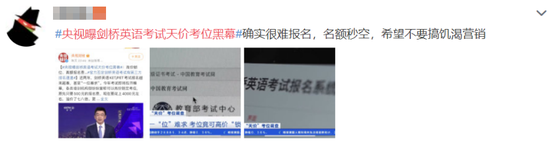 今年剑桥英语KET/PET考试即将拉开帷幕,各类培训机构纷纷宣称可以高价锁定考位,原先只要500元的报名费,现在要花上4000元左右,溢价了七八倍。3月23日,#央视曝剑桥英语考试天价考位黑幕#登上热搜。