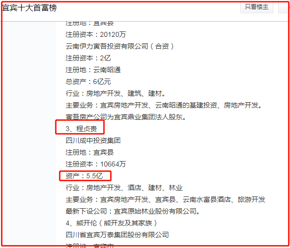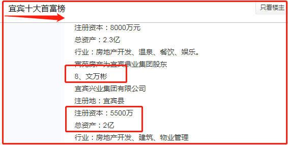 另据网传的宜宾市十大富豪榜单显示:文万彬以2亿总资产位列第八名。