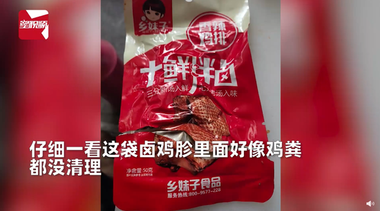 商业 "乡妹子"卤鸡胗被曝"一口下去是鸡粪" 客服:是鸡的一部分 2021-03-24 10:01:04 分享 来源:星视频#男子服务区买卤鸡胗吃到鸡粪#【男子服务区买卤鸡胗,一口下去咬到“鸡粪”,客服:是鸡的一部分】3月21日,上海。索先生在服务区买了一袋零食,打开一吃发现不对劲,仔细一看这袋卤鸡胗里面好像鸡粪都没清理,索先生当时就有点恶心反胃,赶忙联系客服。对方给出的解释让索先生不能接受,目前索先生已经向有关部门投诉。