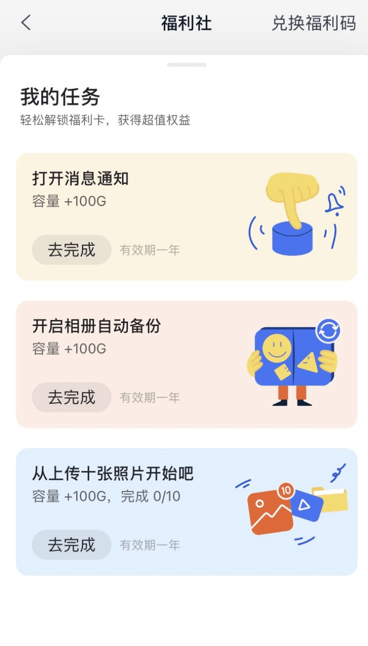 除了福利社内的三个任务以外,网上的福利码还是很多的,可以轻易实现扩容。但是关键在于有效期只有1年,说长不长,说短不短,总得惦记着什么时候到期总归是个心里疙瘩。