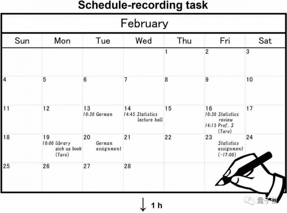 然后,分别使用纸笔或平板电脑、智能手机等的日历程序,记录日程表。志愿者须以真实生活中相同的方式进行记录,没有记录的时间限制,但是无需花费额外的时间来记忆。