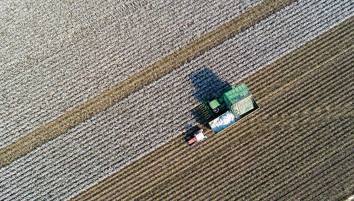 在每年春天,棉农需要选择温度适宜的时期播下种子。棉苗破土之后则需要提防害虫和天气变化。而到了棉花的成熟期,棉农会对棉花进行催熟,脱叶,然后用采棉机统一采棉。在这些环节中,机器换人的趋势正逐渐显露。