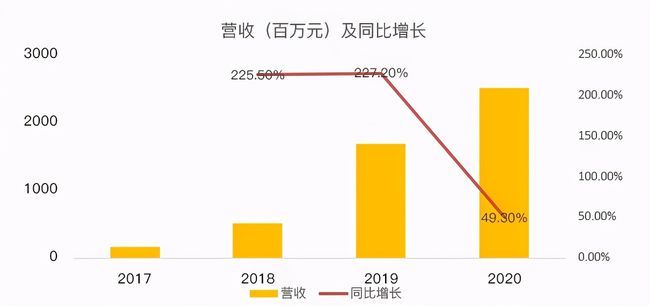 但值得注意的是,营收增速几乎呈现断崖式下跌。2018年、2019年、2020年泡泡玛特总营收同比增长率分别为225.5%、227.2%、49.3%。