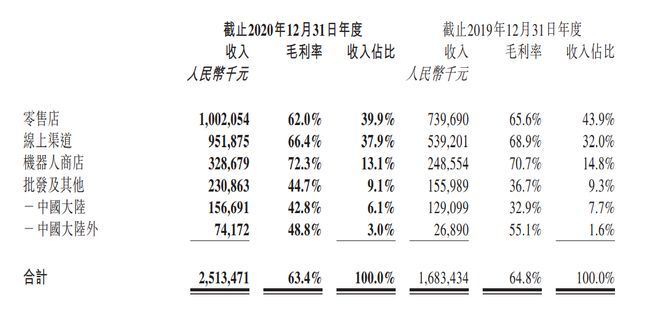 与线上的高增长形成对比的,是线下增收却不够理想。2020年新开店数量增长66.7%,扩张较快,然而零售店收入仅增长了35.5%,其中一线城市的机器人店增长近50%,但创造的总收入却2019年的1.2亿元下降至2020年的1.19亿元。努力扩张的线下机器人店,方向可能不对。