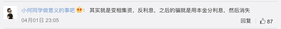 还有网友理智分析后,认为这就是“用本金分利息”的骗局。