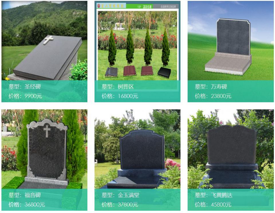 对比来看,售价最贵的德门吉庆碑今年的价格为16.8万元,与2020年的14.6万元相比上涨2.2万元;最便宜的生态葬价格为1.98万元,较去年上涨3000元。今年唯一一款基督教墓福音碑的价格为4.28万元,相较于去年(3.68万元)上涨6000元;去年售价9900元的圣经碑并未出现在目前的展示页面。