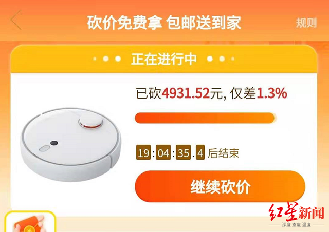 参加多款产品砍价活动,距离“免费拿”都差“0.09%”