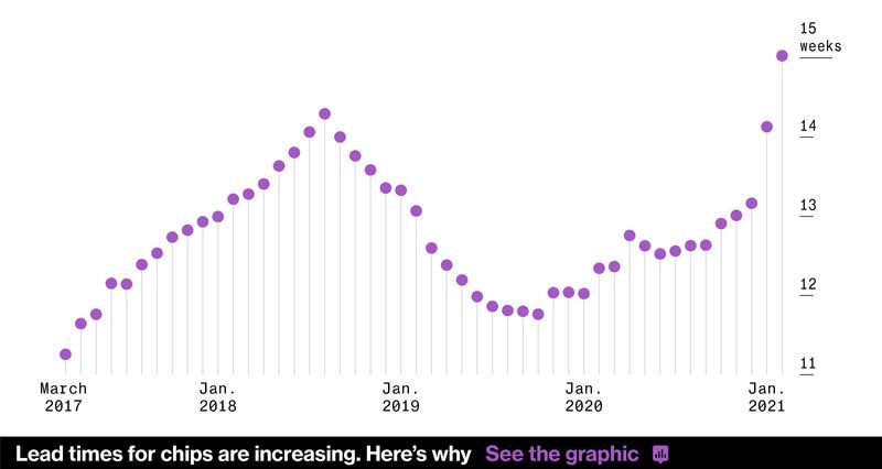 接着在去年年底,需求开始恢复。人们想要外出,但又不想使用公共交通工具。汽车制造商重开工厂,向台积电、三星等芯片制造商发出求助,收到的回应却是“等着吧”。芯片制造商们已经无法以足够快的速度生产芯片来满足其传统忠实客户的需求。
